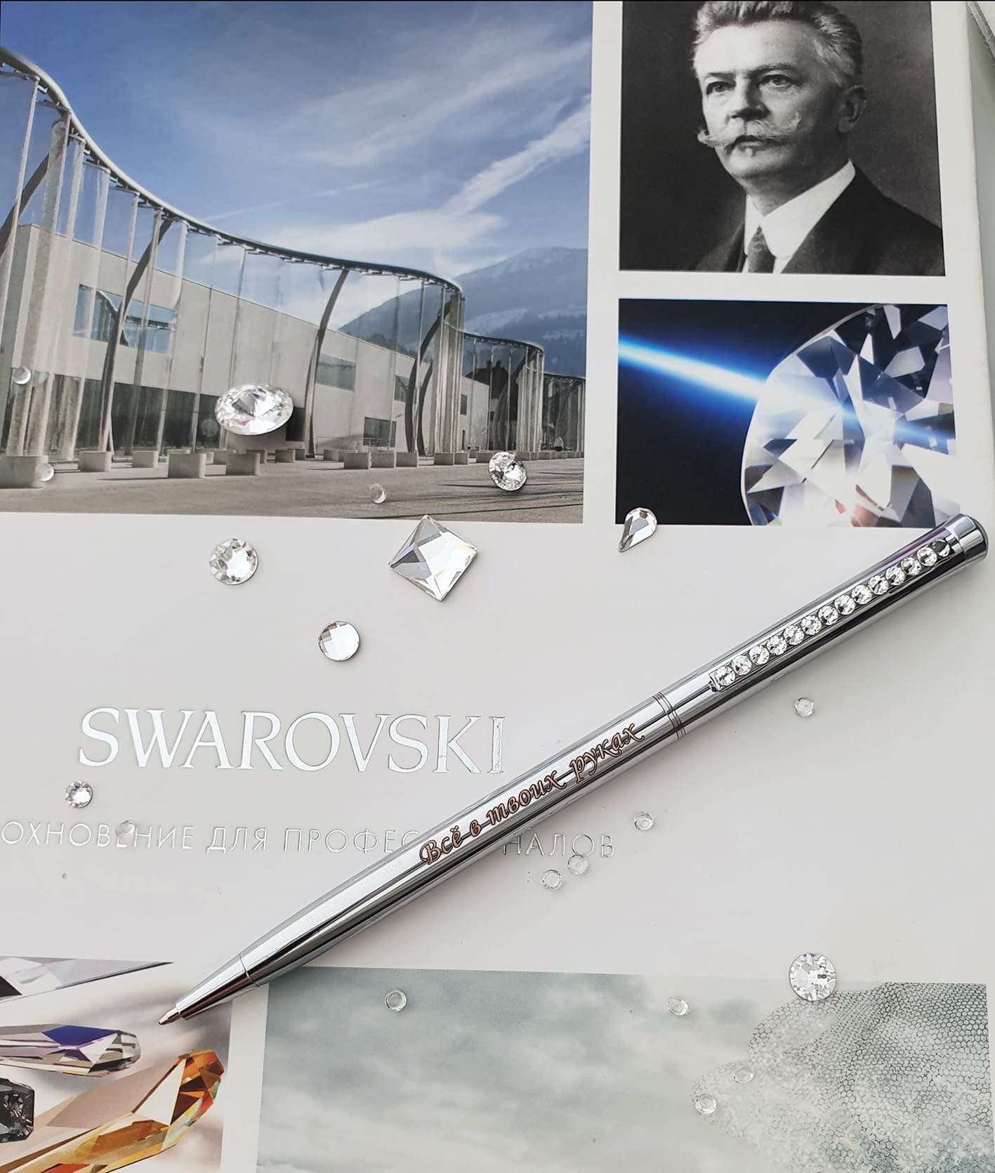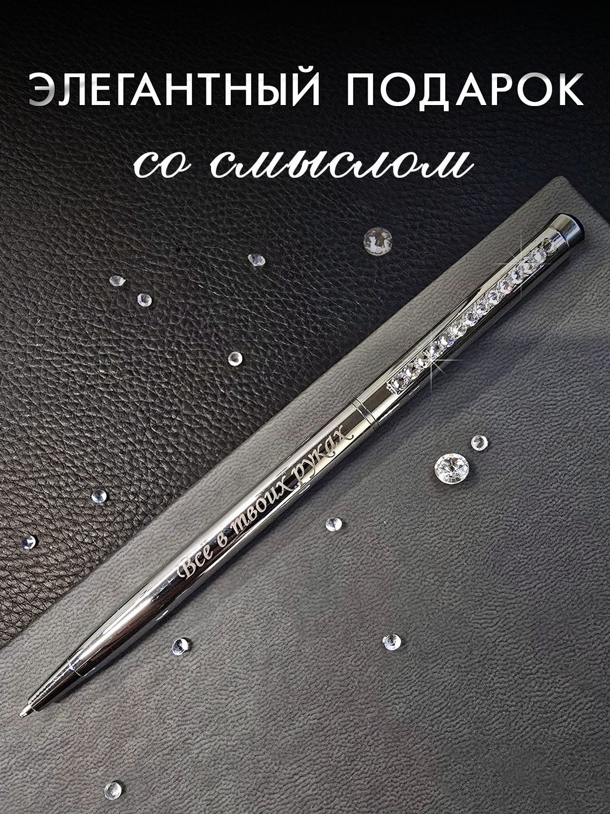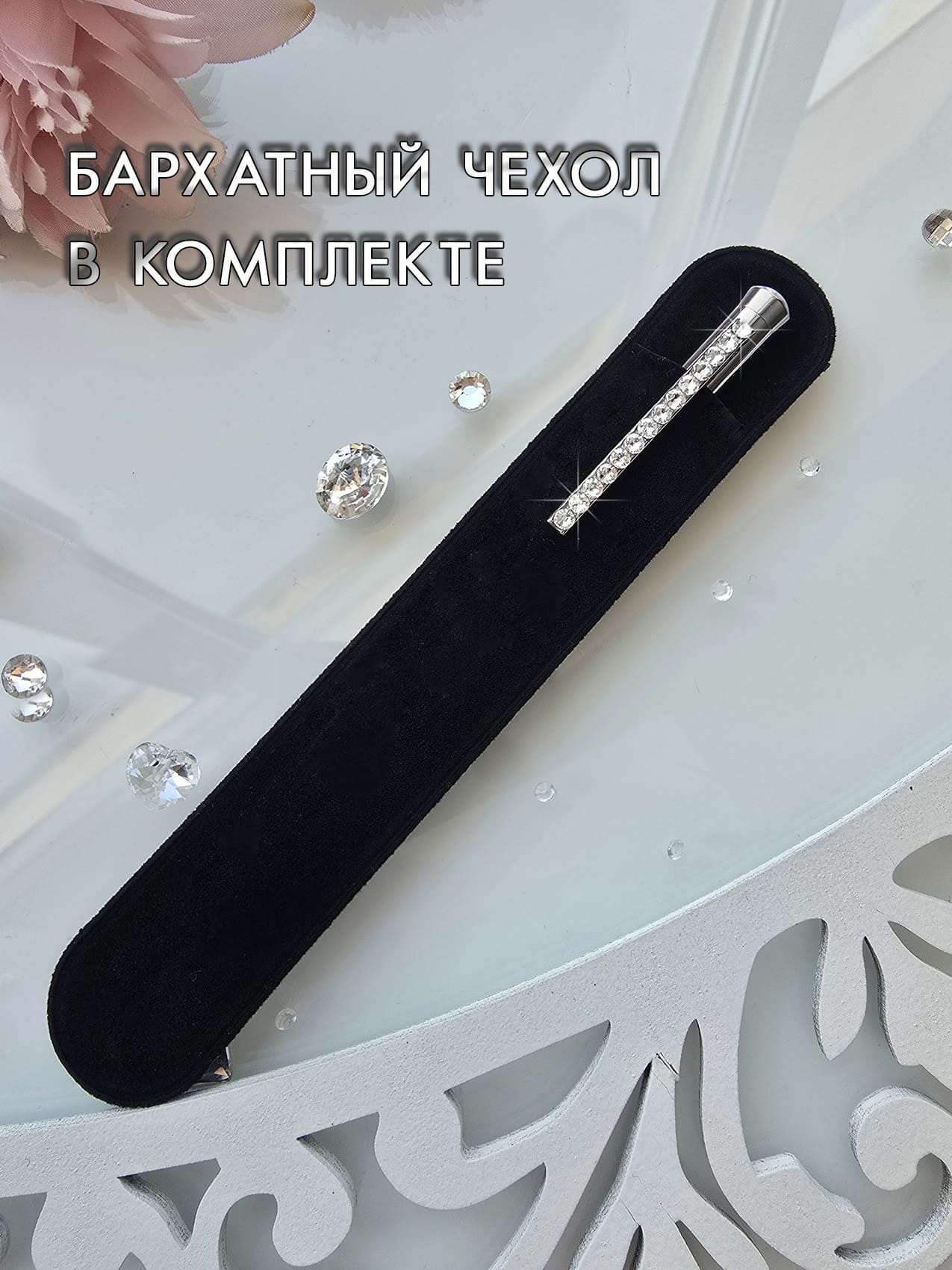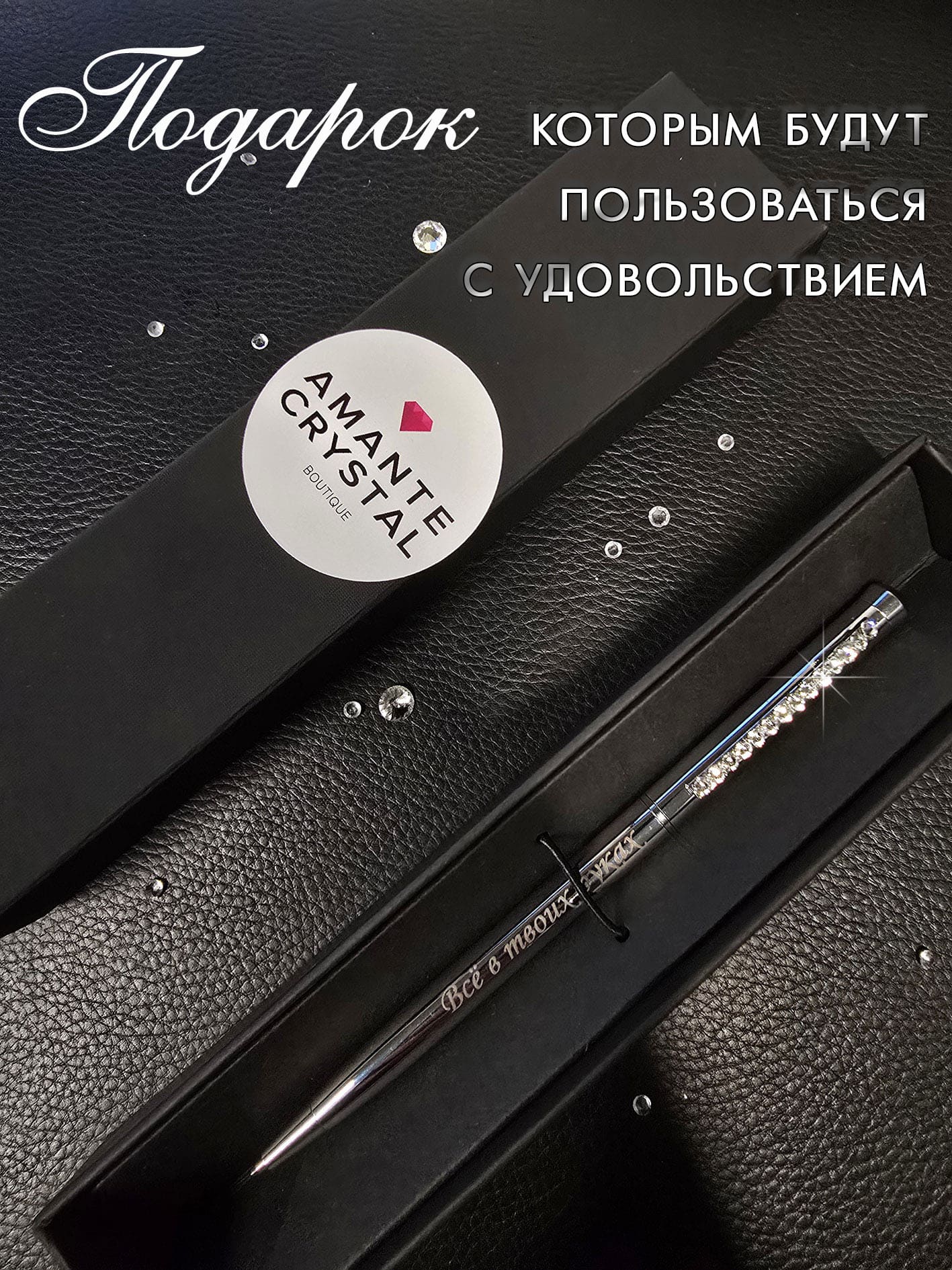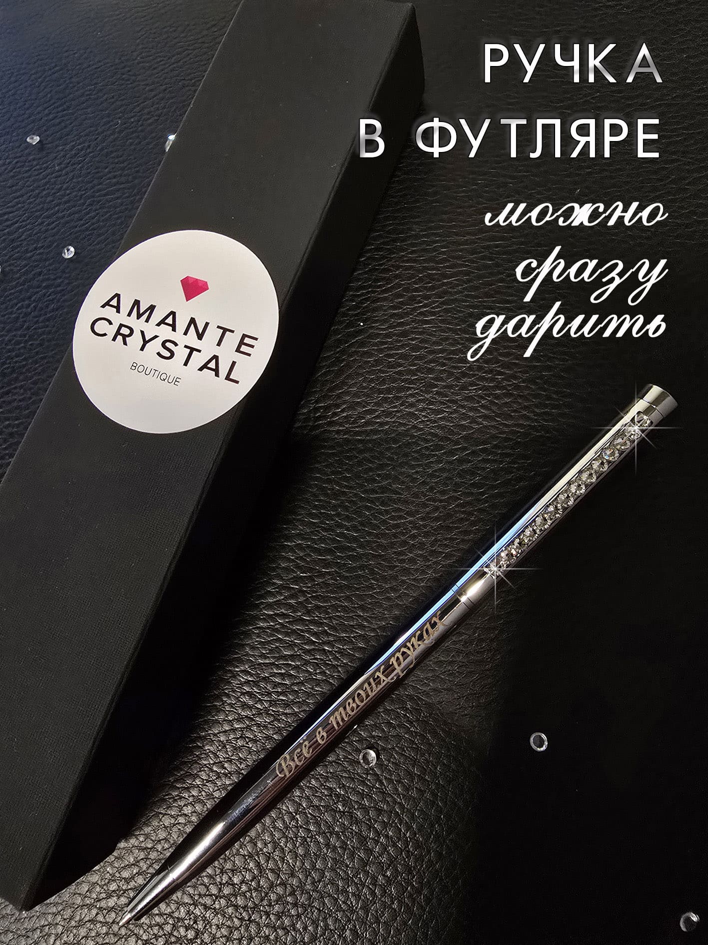 Ручка с гравировкой инкрустирована кристаллами.