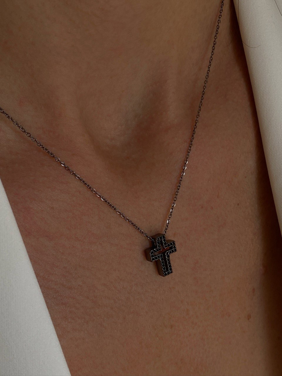 Оригинальная подвеска в виде объемного крестика с австрийскими стразами. Прекрасно подойдет к любому вашему образу. Длина цепочки 44 см +7см (регулируется). Размер крестика не большой 14*10*3 мм. Гальваническое покрытие бижутерии гипоаллергенно-Ruthenium. Ко всем украшениям с кристаллами прилагается рекомендация по носке и уходу за нашими изделиями.