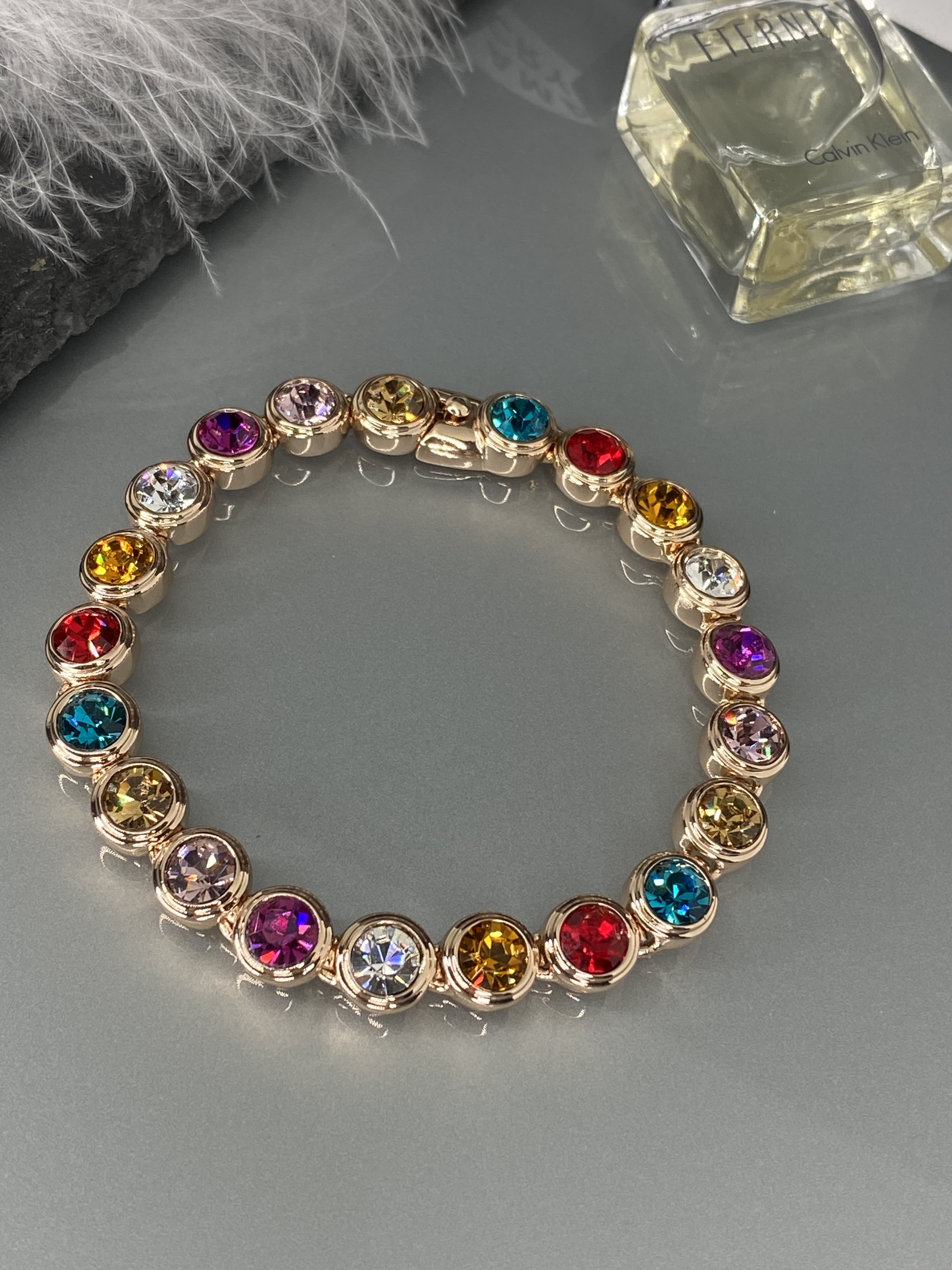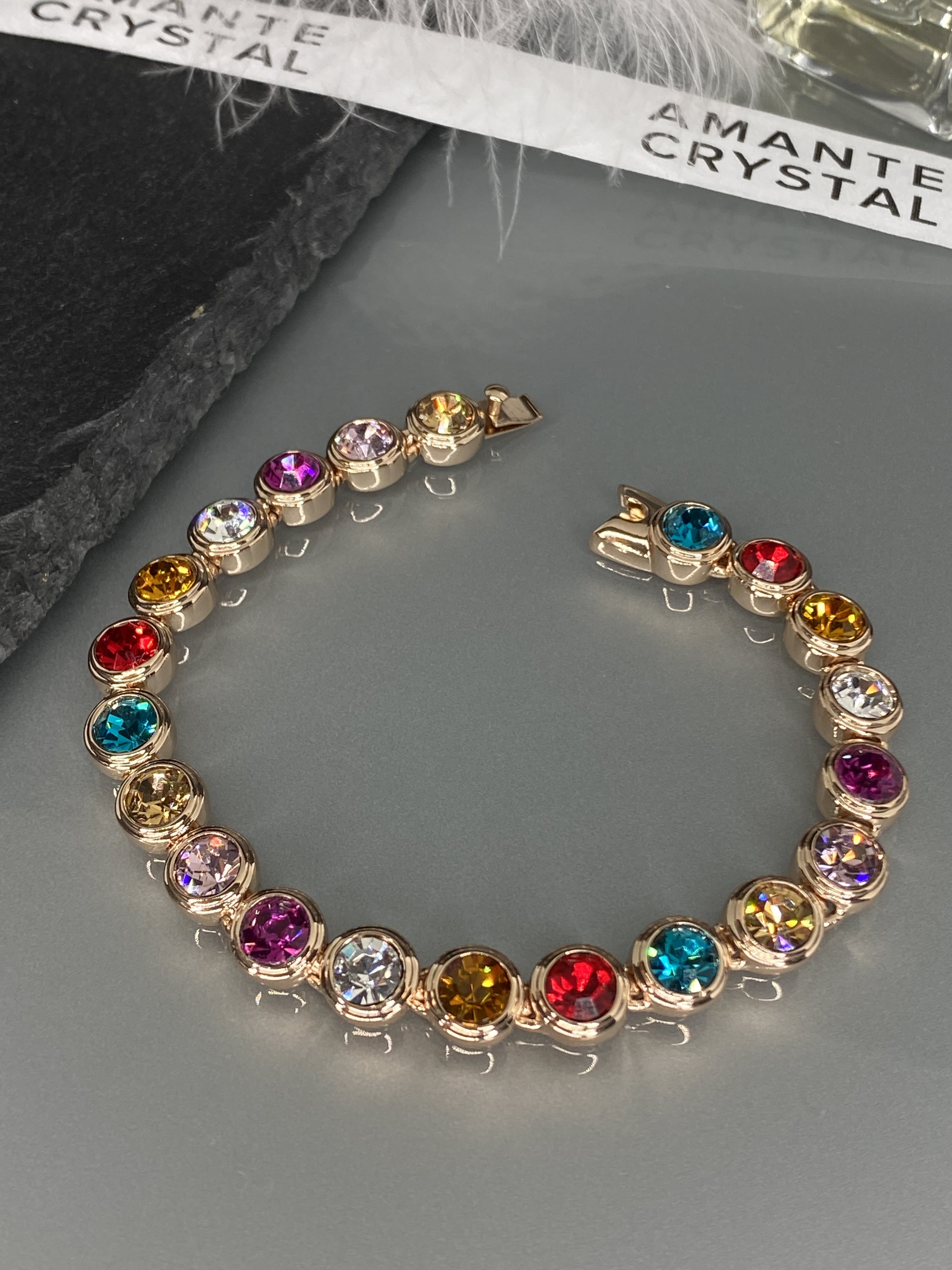 Каждая девушка хочет стать индивидуальной и именно поэтому мы предлагаем Вам Браслет с яркими кристаллами семи разных цветов .Он подарит восторженные взгляды окружающих. Диаметр кристаллов - 6 мм, Длина 18 см. Замочек надежный и удобный. Гальваническое покрытие бижутерии: гипоаллергенное-Aurum (Au) Золото. Браслет блестящий, комфортный в носке, не вызывает аллергию. Упакован с приложением инструкции по использованию. Рекомендуем внимательно ознакомиться, что позволит продлить срок носки. Данная популярная модель зарекомендовала себя как лидер продаж. Безупречный блеск и форма сделают ваш образ стильным, а подарок идеальным! Создайте настроение своим близким и родным людям: дочке сестре бабушке коллеге учителю и даже девочка подросток оценит такой сюрприз. Браслет color это модный лаконичный аксессуар на все времена и на любой возраст. В каталоге нашего бренда Вы найдете большой ассортимент со скидками, а также новинки и тренды сезона. Выбирайте лучшее каждый день с брендом Amante crystal.