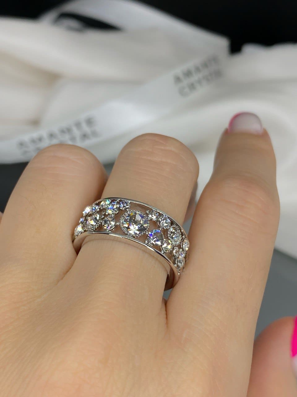Цвет кристалла: Crystal. Размер кольца регулируется с 17 до 19. Гальваническое покрытие бижутерии: гипоаллергенное-Rhodium (Rh) Родий