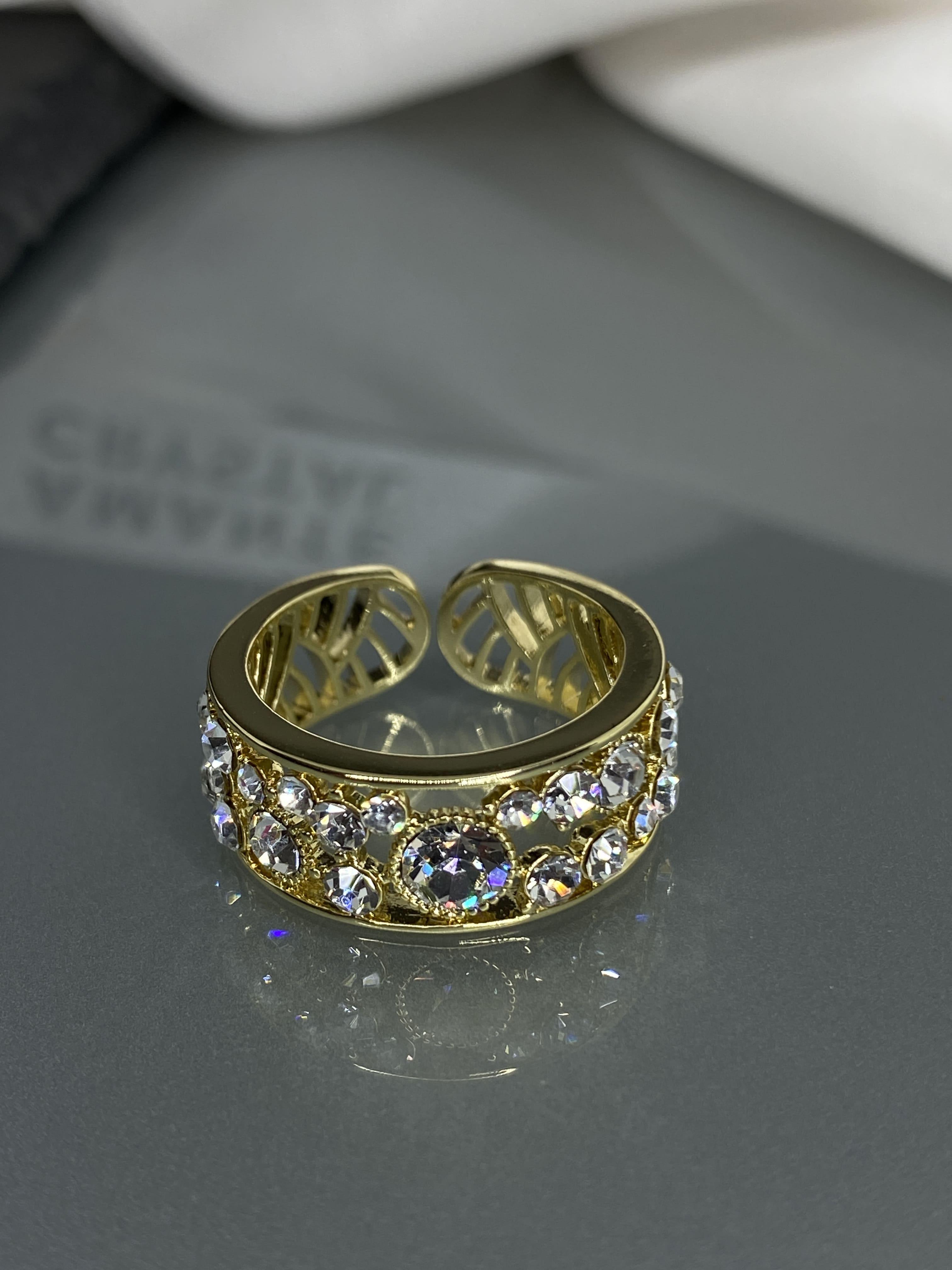 Цвет кристалла: Crystal. Размер кольца регулируется с 17 до 19. Гальваническое покрытие бижутерии гипоаллергенно-Aurum (Au) Золото