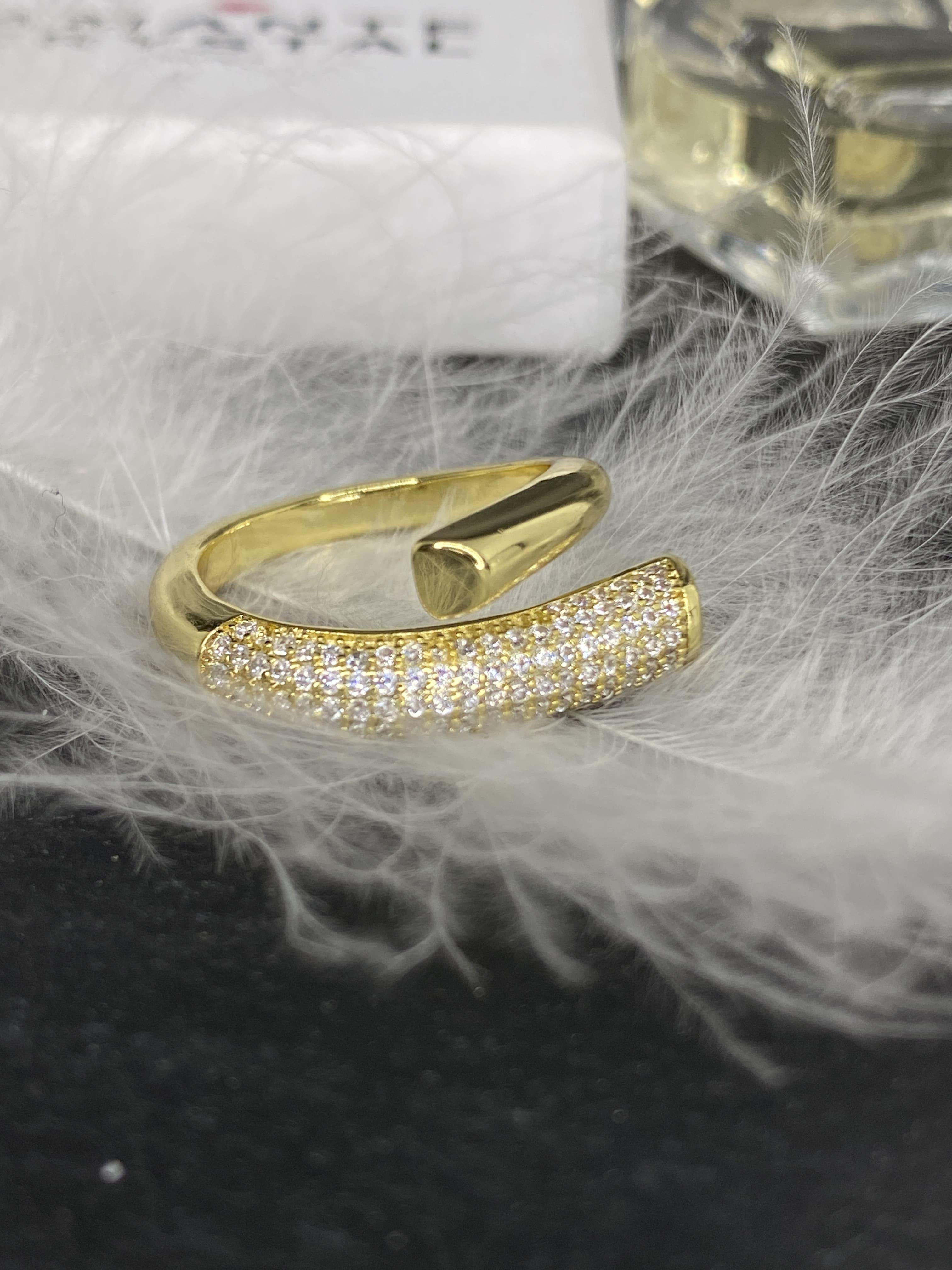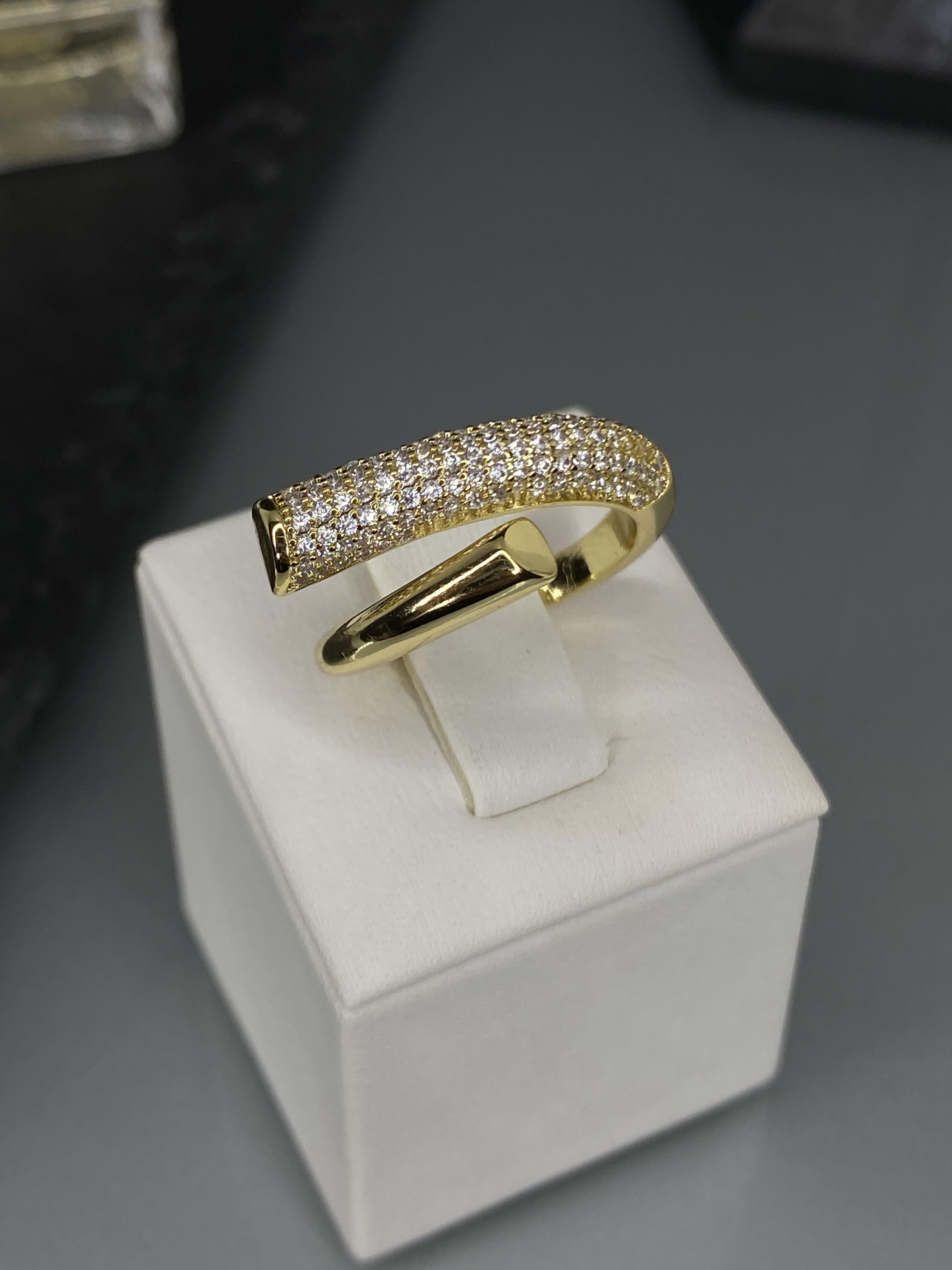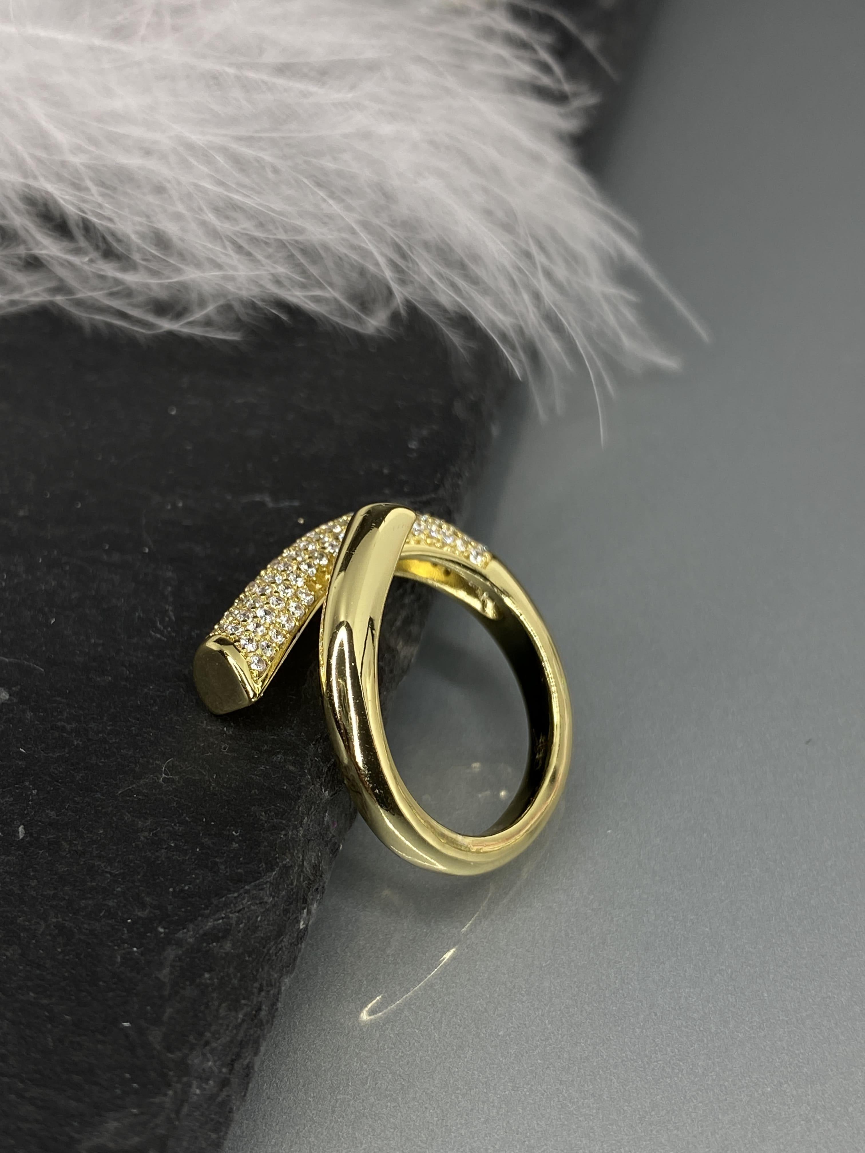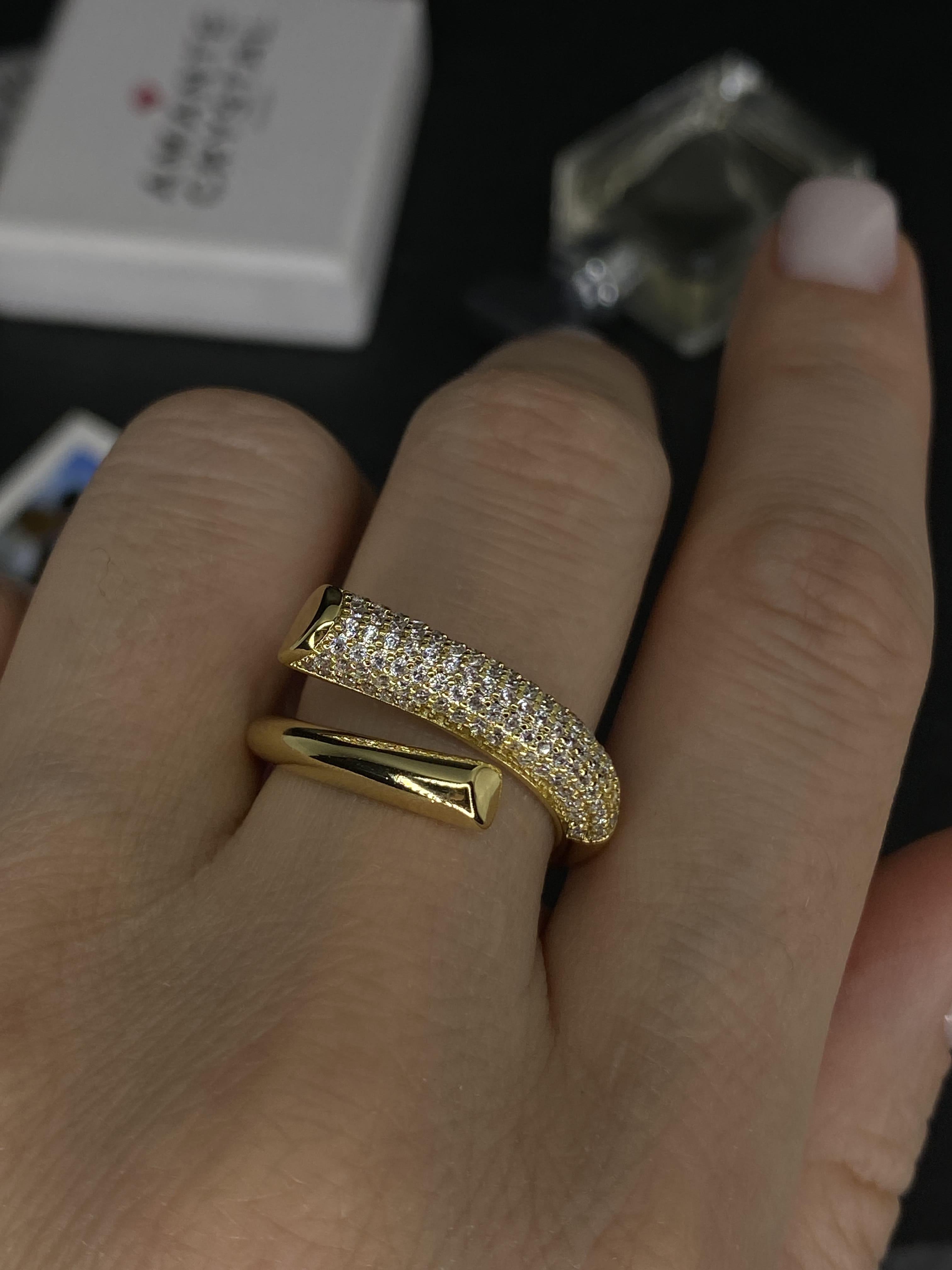 Открытая форма кольца позволяет ему элегантно обвивать палец, создавая эффектный и запоминающийся образ. Такое кольцо точно не останется незамеченным. Кольцо регулируется