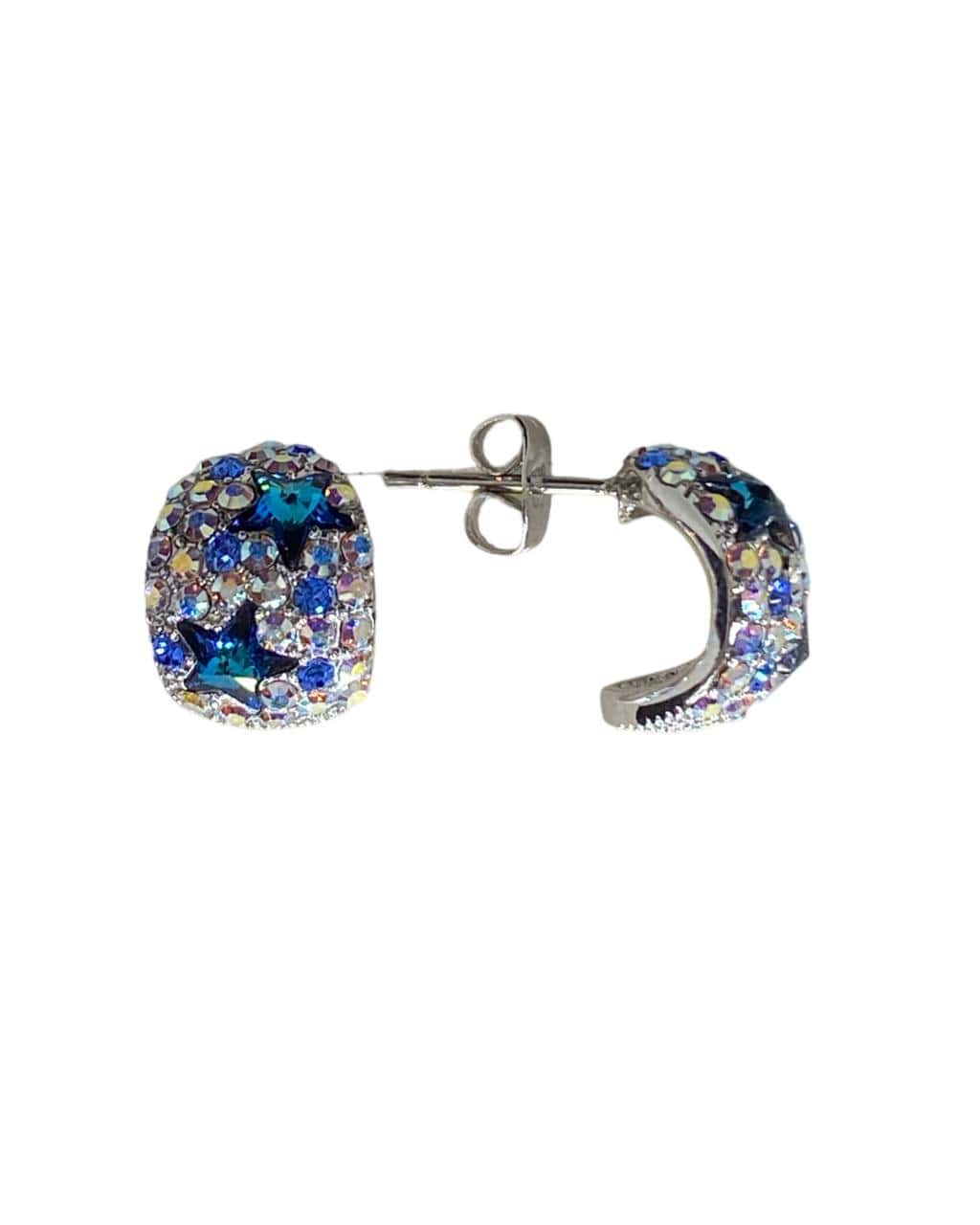 Яркие женские серьги с кристаллами в виде звезд и разноцветной россыпью страз Высота изделия: 10 мм. Ширина изделия: 12 мм. Вес изделия: 2 г. Это прекрасный подарок на праздник жене, любимой, девушке, дочери, маме, бабушке, подруге, коллеге. Отличный подарок на юбилей, день рождения, праздник, 8 марта, Новый год, 14 февраля. Ко всем украшениям с кристаллами прилагается рекомендация по носке и уходу за нашими изделиями.