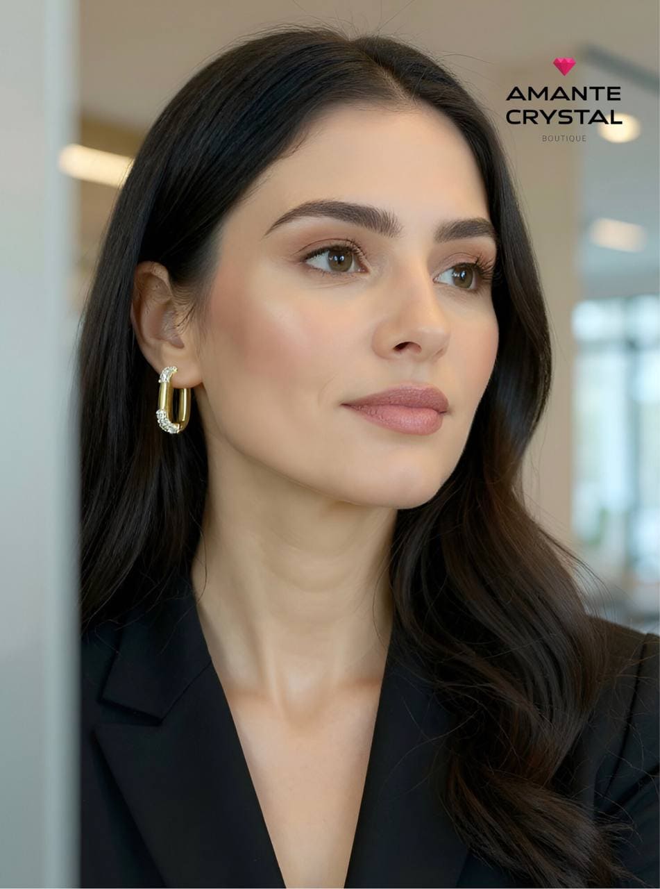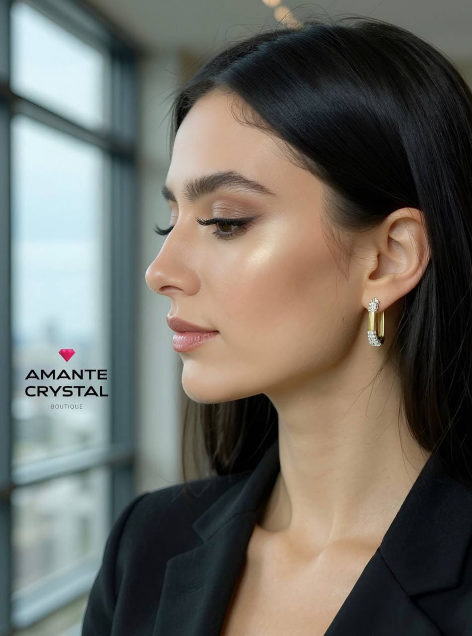 Общая высота изделия- 24 мм. Застежка очень надежная и удобная. Гальваническое покрытие бижутерии: гипоаллергенное-Aurum (Au) Золото. Серьги c австрийскими стразами блестящие не тяжелые и комфортные в носке, не вызывают аллергию.