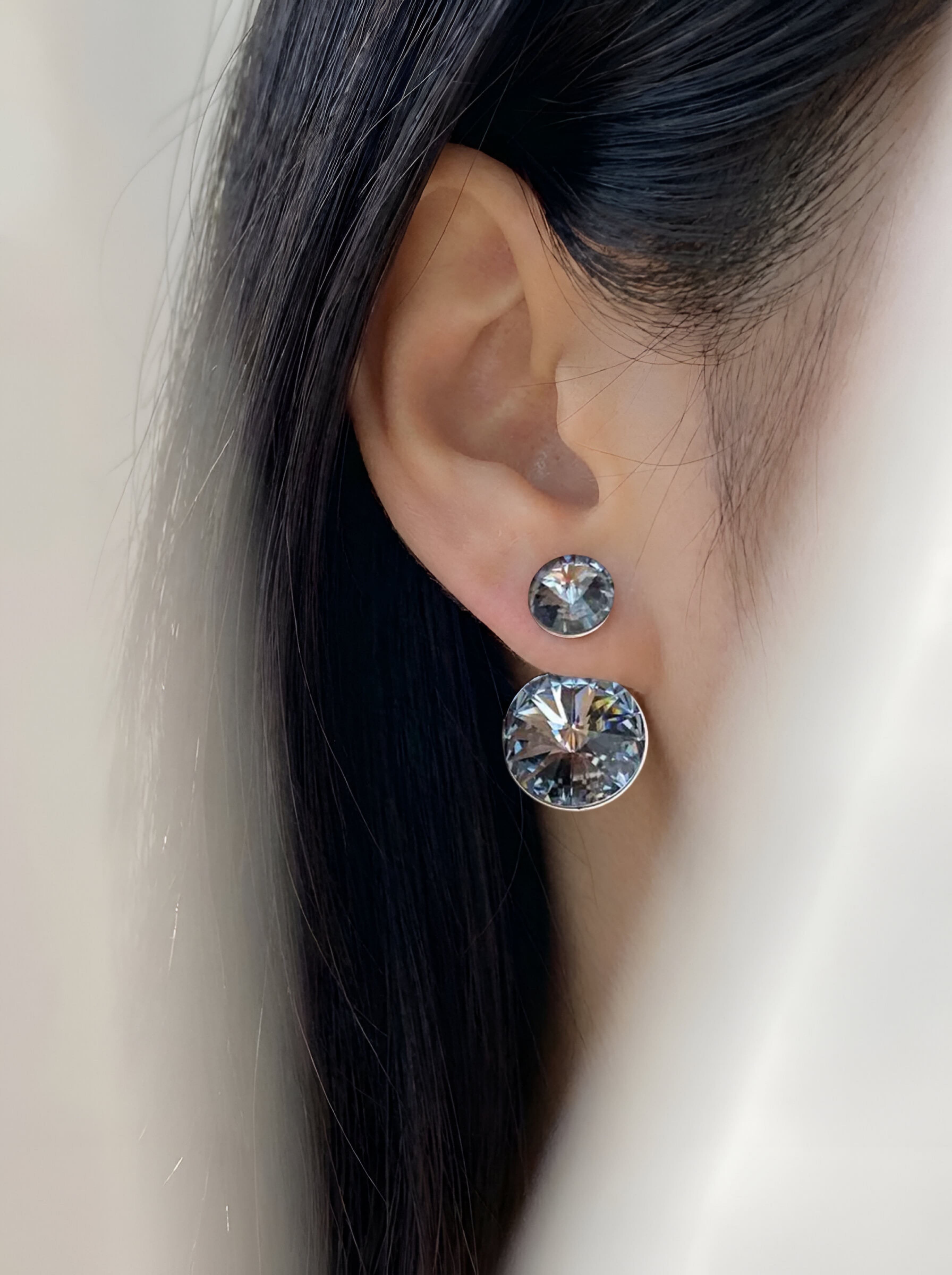 Цвет- Silver night. Верхние гвоздики можно носить отдельно, как самостоятельные пусеты. Размер кристалла: 8/14мм. Высота серьги: 24мм. Застежка очень надежная и удобная. Серьги не тяжелые и комфортные в носке. Гальваническое покрытие ювелирной бижутерии: гипоаллергенное- Rhodium (Rh) Родий. Прилагается инструкция по уходу за изделием. Рекомендуем внимательно ознакомиться, что позволит продлить срок носки. Это прекрасный подарок на праздник жене, любимой, девушке, дочери, маме, бабушке, подруге, коллеге.